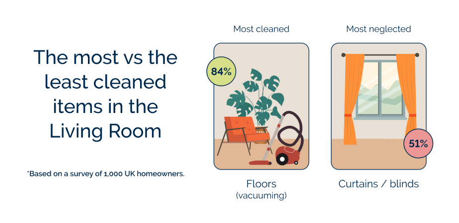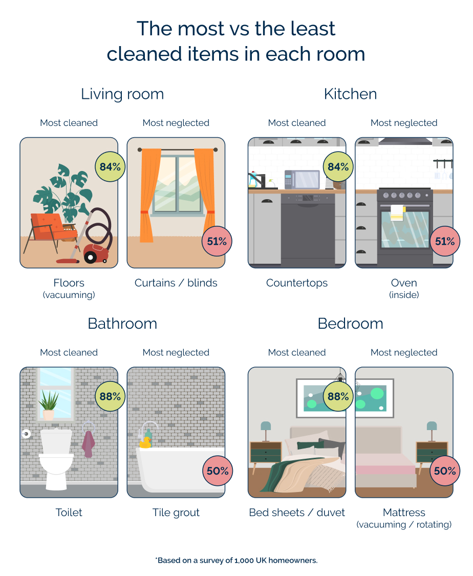Taking a closer look at each room in the home, we’ve revealed which areas Brits are cleaning the most frequently and which areas they are neglecting.