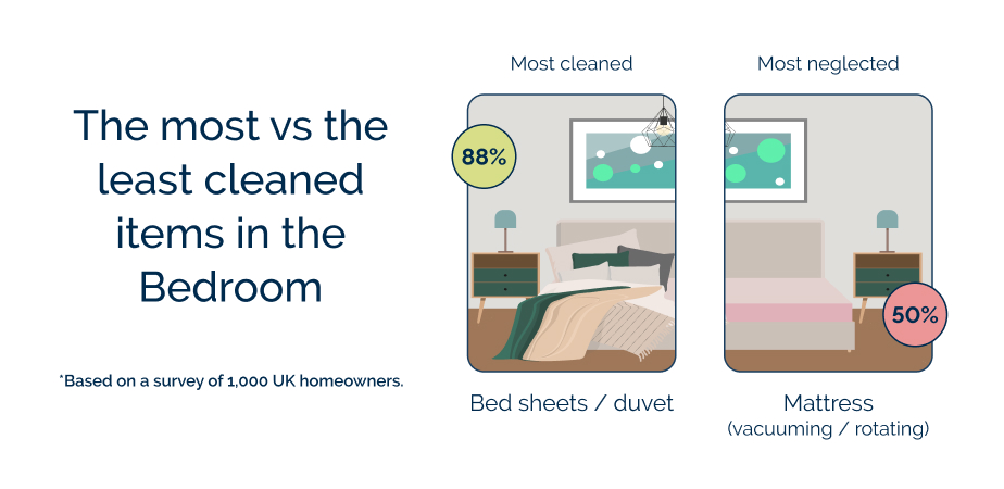 Although people regularly clean their bedding, mattresses often go neglected. It is recommended that mattresses be cleaned every six months to help remove any accumulated dead skin cells, dust, and other allergens.