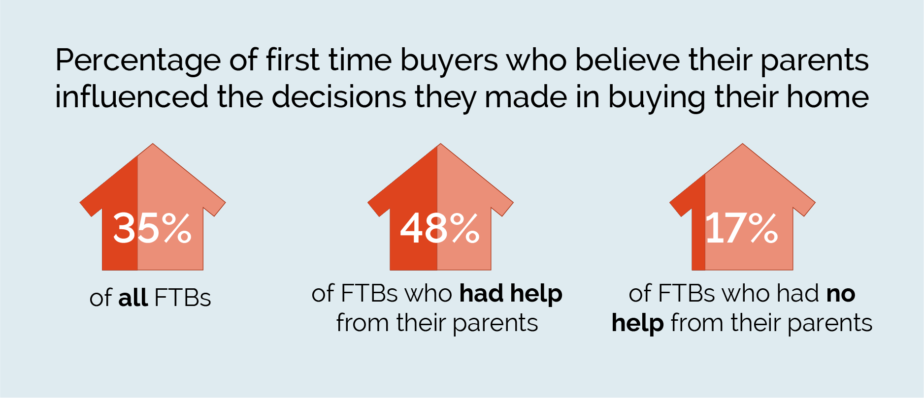 When surveyed, more than a third (35%) of the 1,001 people surveyed said that their parents had influenced their purchase in some way, whilst 58% said their parents had helped them generate the money to pay for a deposit, whether through a gift or allowing them to move back home to save.
