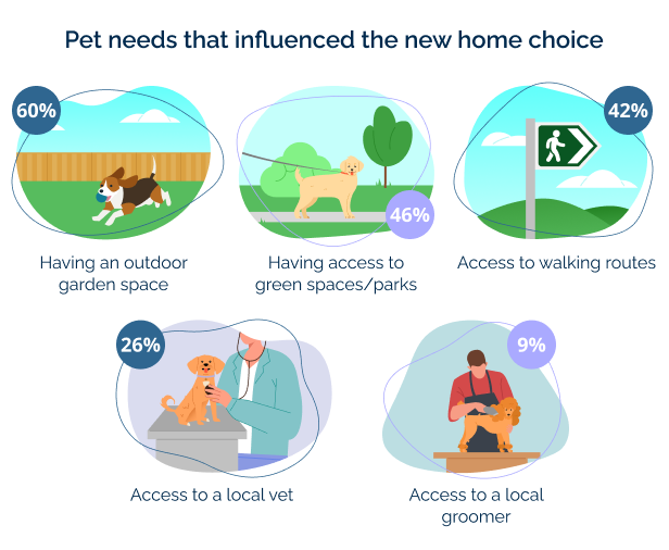 When it comes to must-haves in a new home, outdoor space is unsurprisingly the most important factor, with a garden topping the wish list for 60% of pet owners.
