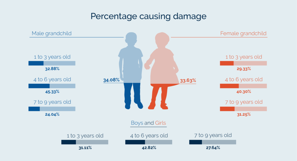 Interestingly, grandchildren between the ages of four and six were revealed as the most likely culprits, perhaps because they’re old enough to be up and about, but not quite old enough to know that they shouldn’t be doodling on the wallpaper.