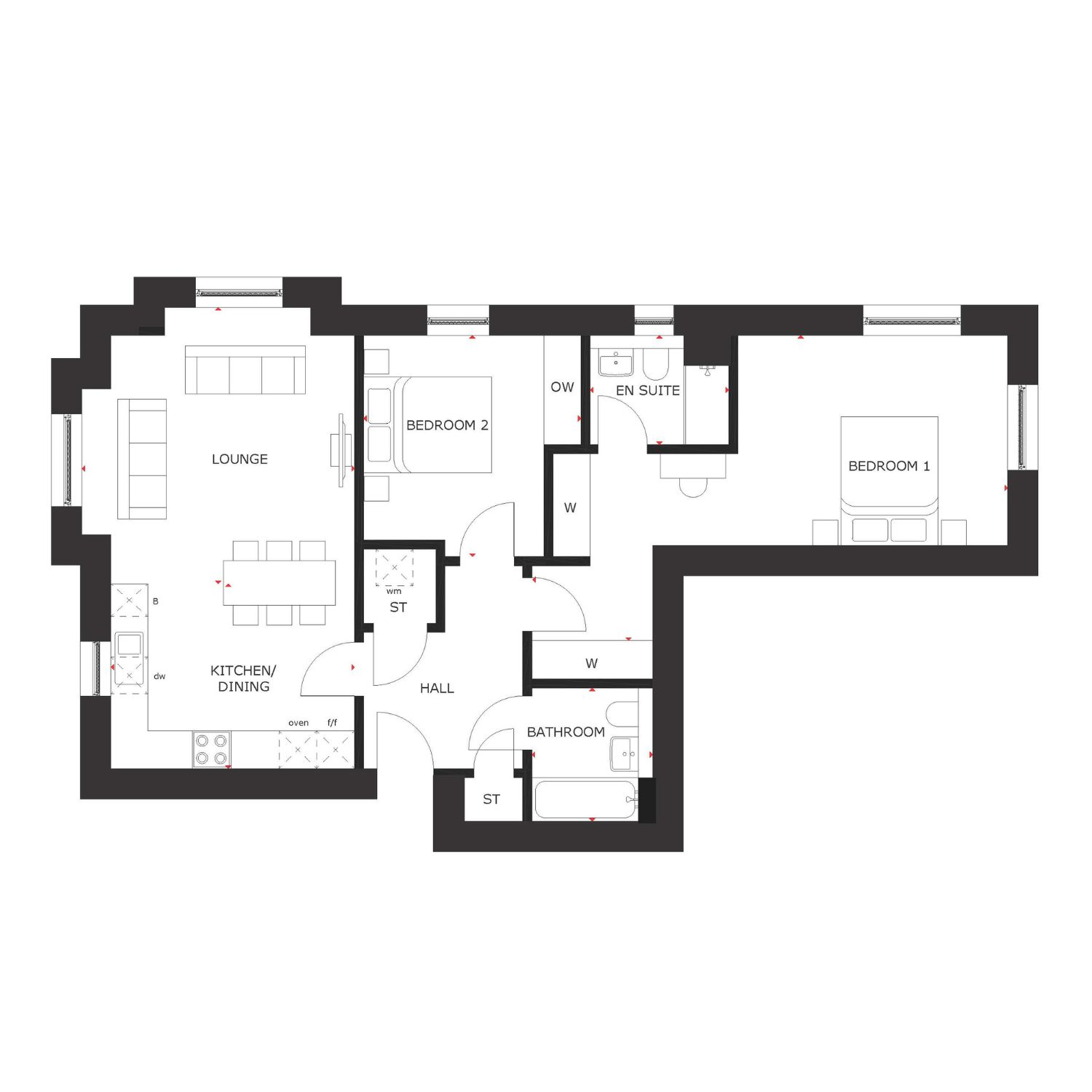 The Jubilee apartment offers two bedroom modern living with beautifully fitted kitchens, open plan eating/living spaces and windows that allow natural light to flood throughout. The main bedroom features an en suite, and there's a generous second double bedroom, contemporary bathroom and handy hall storage. In addition this apartment boasts lift access and secure entry system.