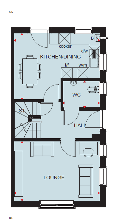 This three bedroom semi detached home has an open plan kitchen and a spacious lounge. There's also a cloakroom and some understairs storage.