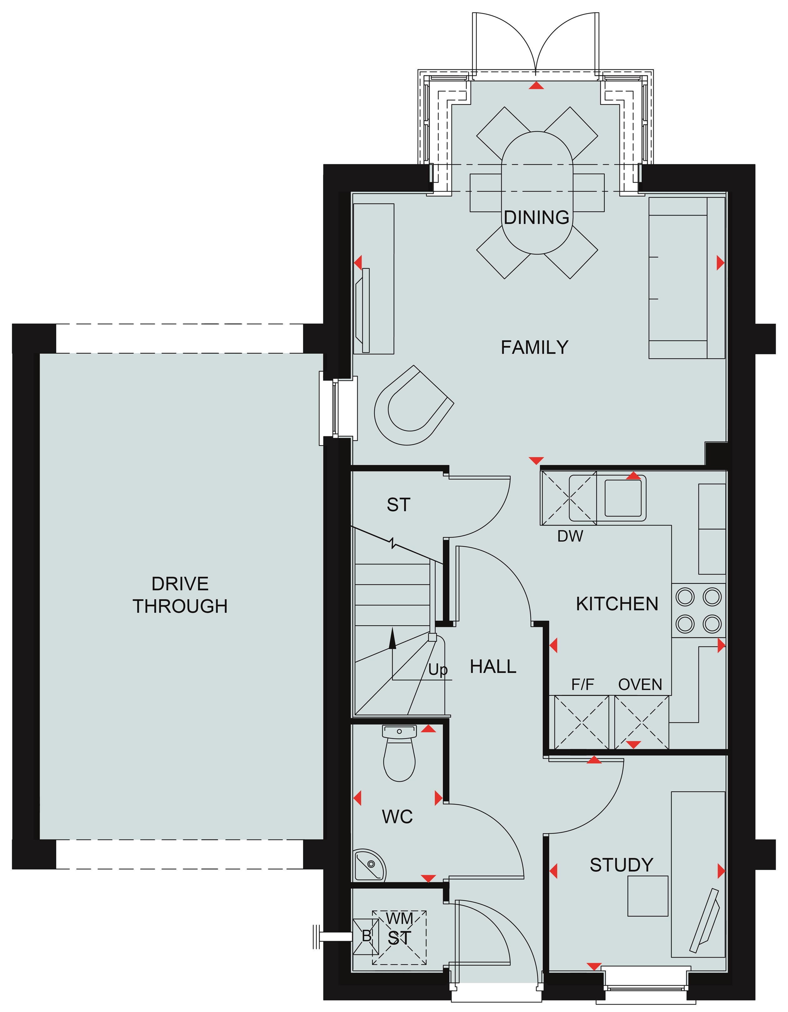 Located on phase two, the Cannington features an open-plan kitchen with French doors to your garden, alongside a separate downstairs study.