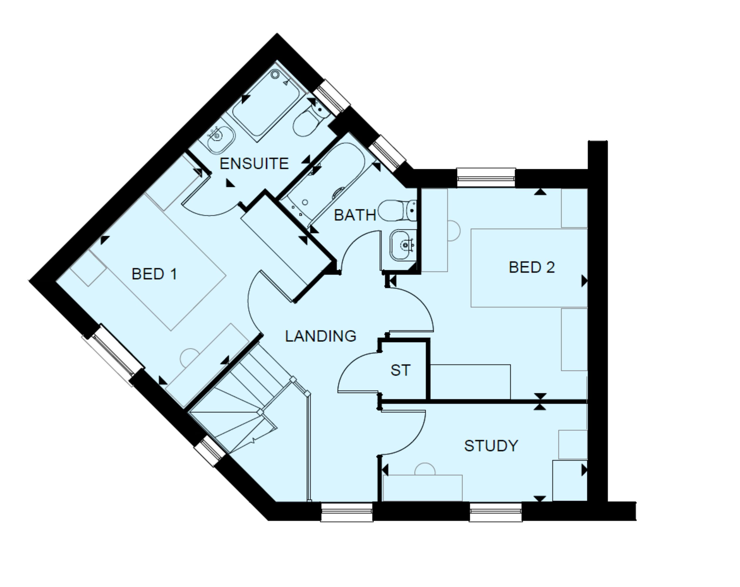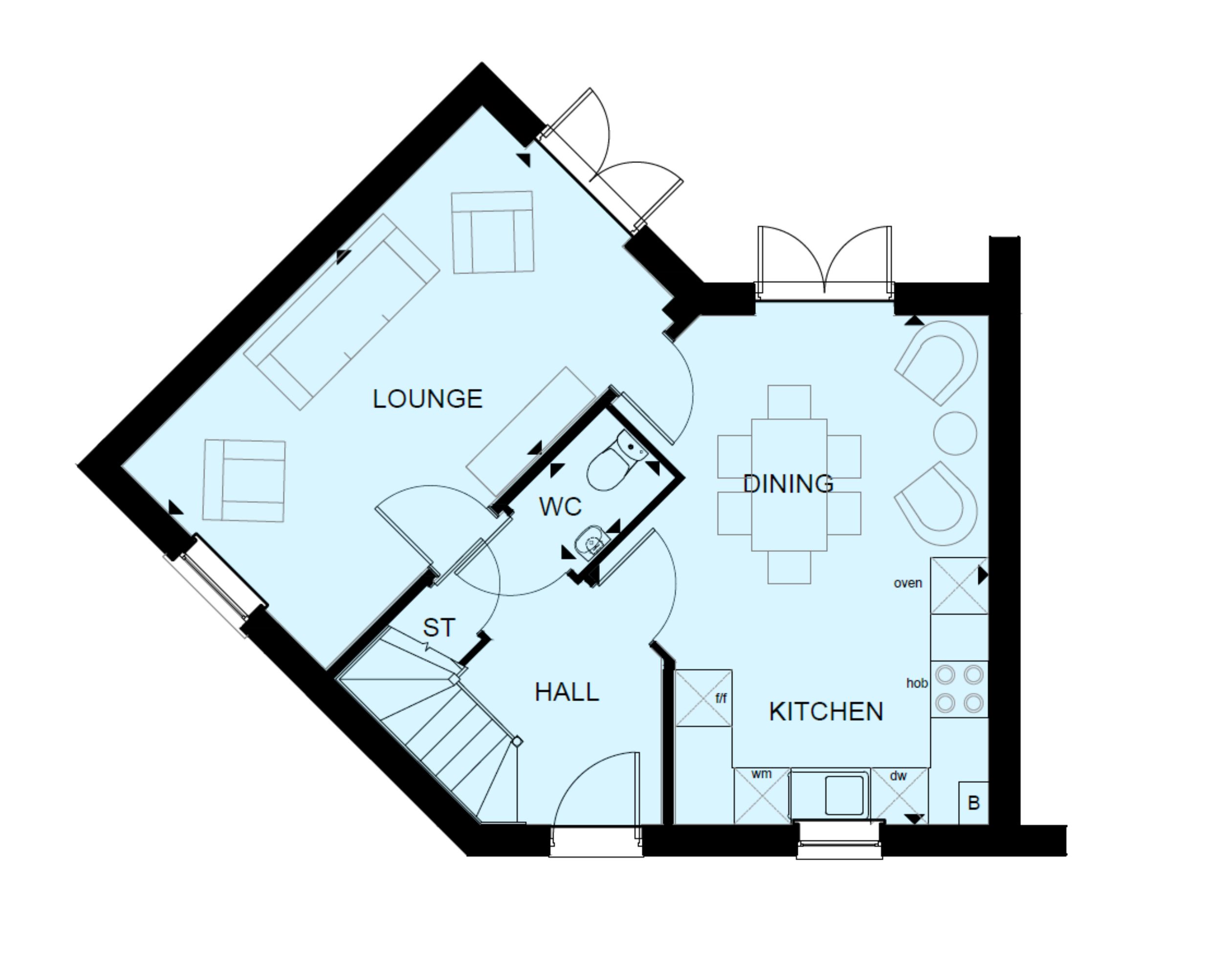 Downstairs you'll find your spacious, dual-aspect lounge with French doors out to your garden, plus your modern kitchen-diner which has a second set of French doors.