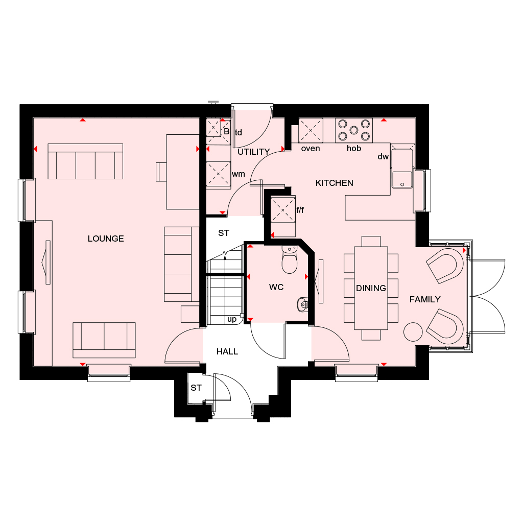 As you enter the Hollinwood, the hallway opens up this 4 bedroom home wonderfully. There is a dual aspect lounge which is a good space for the family to gather in, and the open-plan kitchen features dining & family areas as well as French doors leading to the rear garden. This home provides a sense of light and space, and the separate utility room and storage cupboards supports modern, clutter-free living.