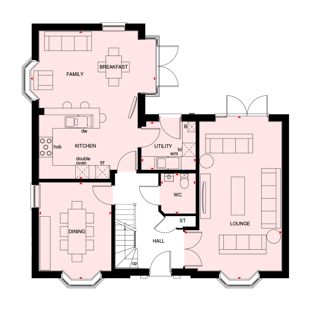 The Henley Special - Open-plan kitchen with family/breakfast areas featuring a bay-window and French doors onto the garden. A bay-fronted dining room offers a place to entertain guests while the spacious dual aspect lounge benefits from a bay-window and French doors.