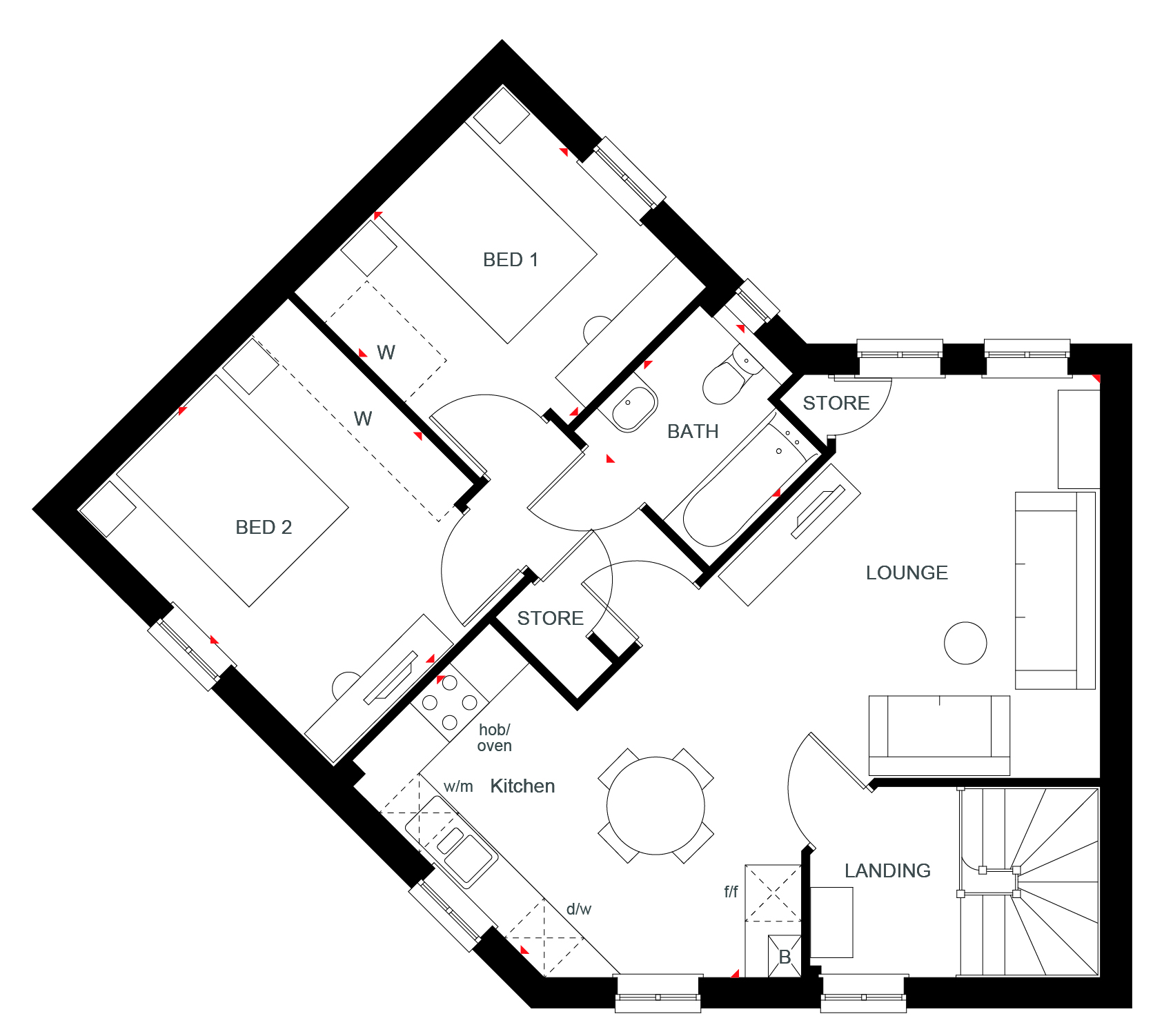 The Easthorpe is a popular two bedroom Maisonette. Discover a modern open-plan kitchen, diner and lounge.