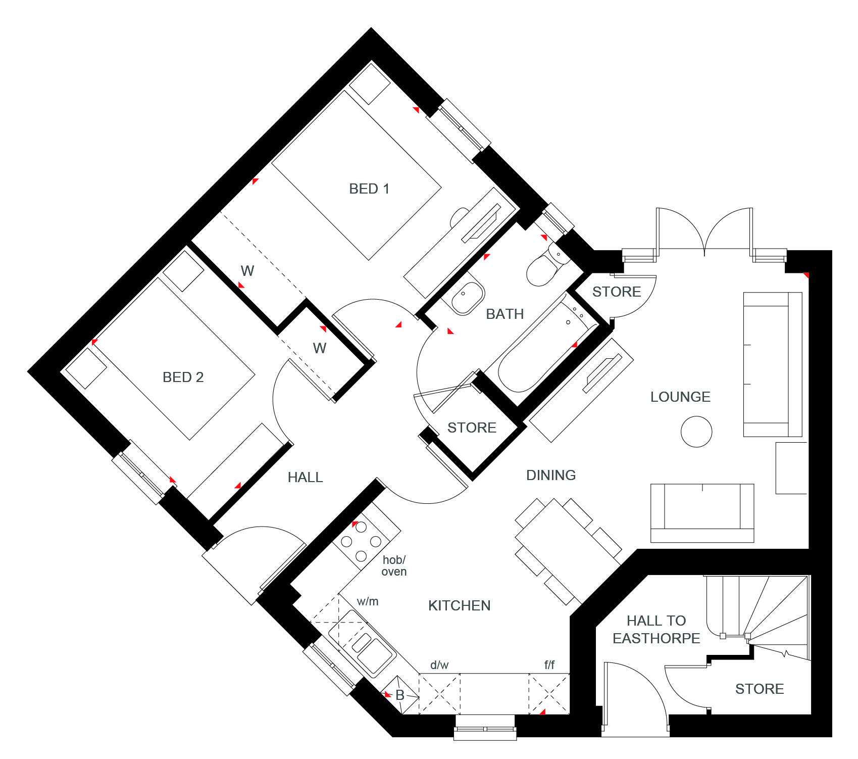 The Belstead is a popular two bedroom Maisonette. Discover a modern open-plan kitchen, diner and lounge featuring a set of French doors.