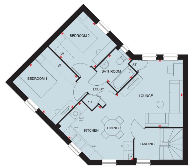 The Easthorpe is a popular two bedroom Maisonette. Discover a modern open-plan kitchen, diner and lounge.