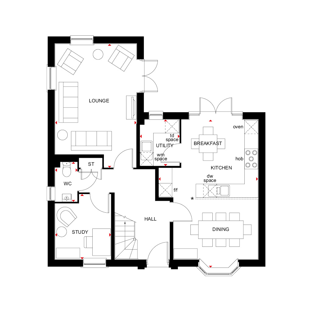 If you enjoy entertaining, the kitchen with handy utility connects to your dining area via a half wall, allowing you to cook whilst your guests relax. Further rooms include a study and W.C, whilst the large lounge with French doors lead to your garden.