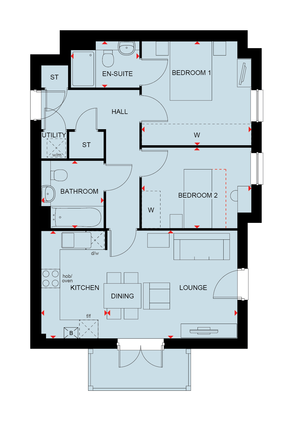 A contemporary apartment with an open-plan kitchen/living and dining room that opens to your private balcony. The two bedrooms are ideal for relaxing after a long day and they are also great for flexible living. You could use the second bedroom as a study or home gym. This home also has plenty of clever storage space, an en suite and a spacious bathroom.