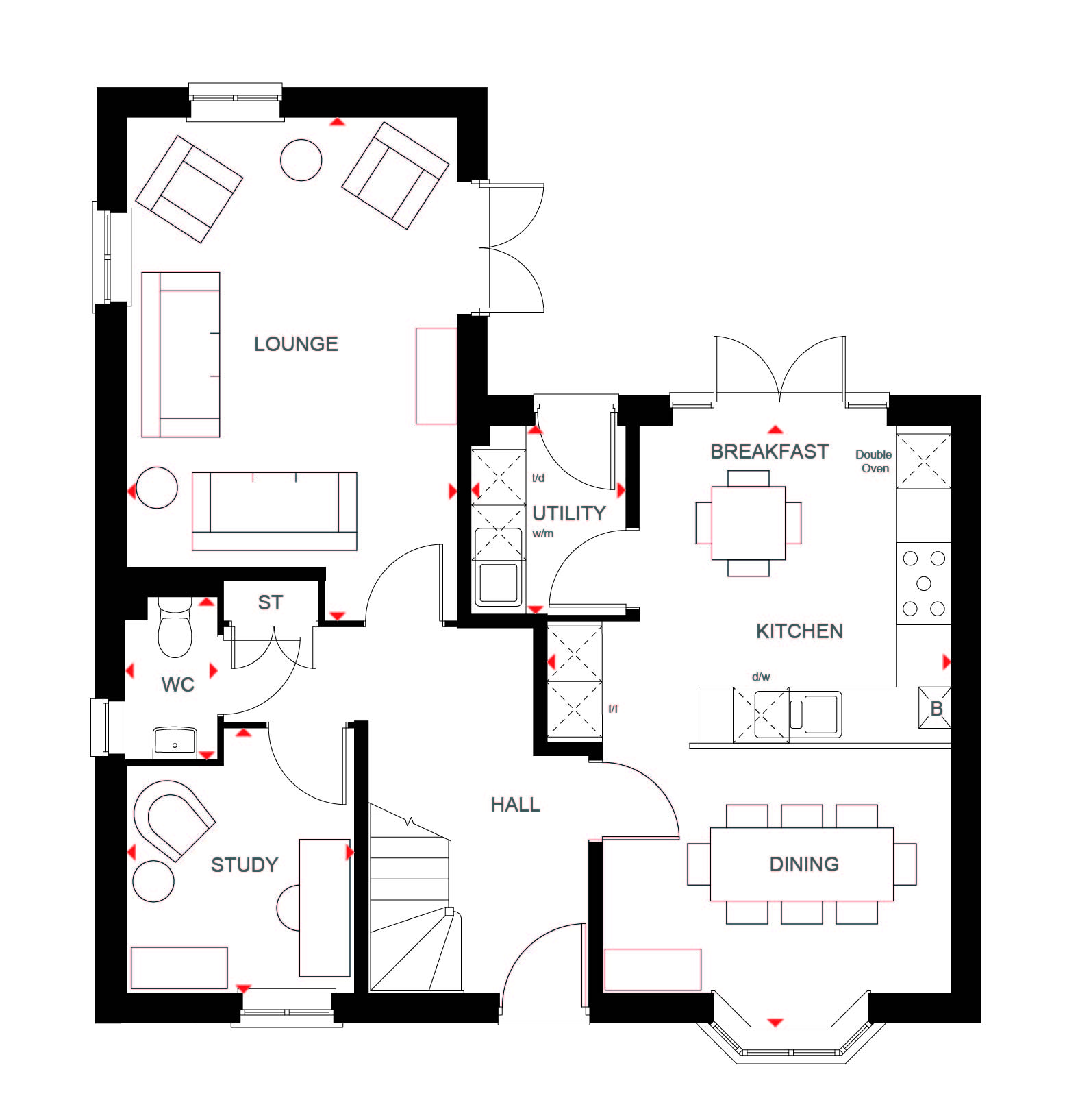 The Wychwood features an open-plan kitchen with dining area, utility room & dedicated home office. The generous lounge features a bay window & French doors that lead to the garden.