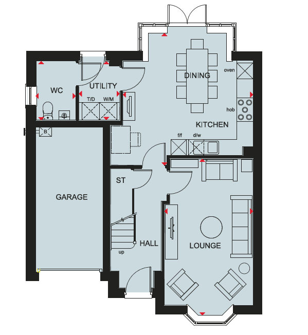 Overlooking green open space, the Berney features an open-plan dining kitchen with French doors leading to the garden. Downstairs also features a spacious lounge and a utility room.