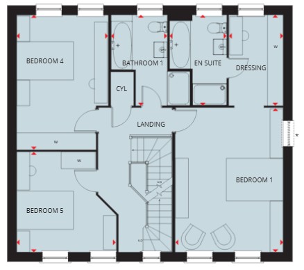 • Top floor bedrooms