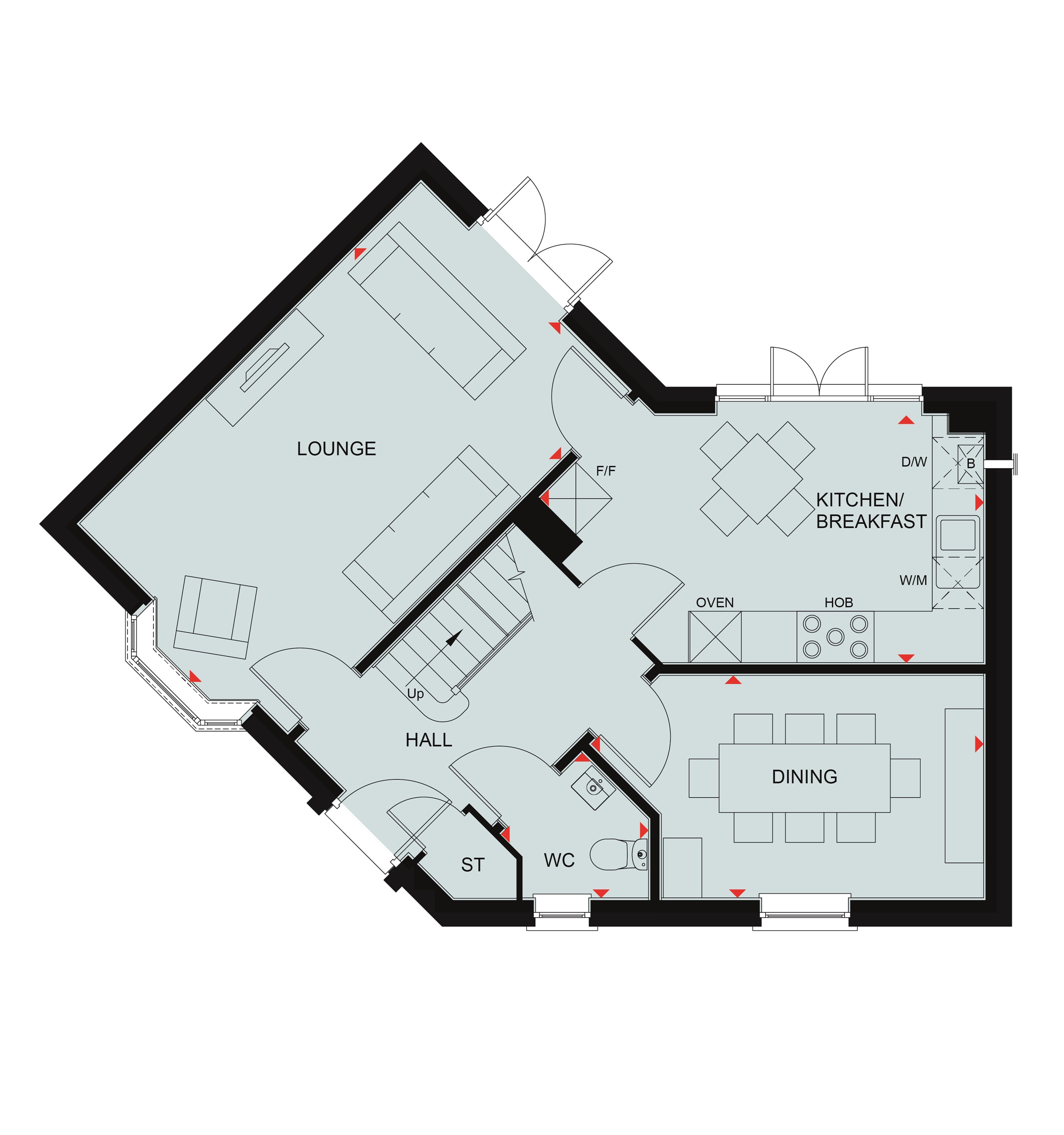 The Lynemouth – Discover an open-plan kitchen/breakfast area with French doors onto the garden. A separate dining room provides a space to entertain while a spacious bay-fronted lounge with French doors is the ideal place to relax.