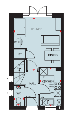 The Wilford offers a modern ground floor layout with a kitchen to the front and open-plan lounge with dining space to the rear. French doors lead out to the rear garden, allowing for the outside and inside to flow simultaneously.