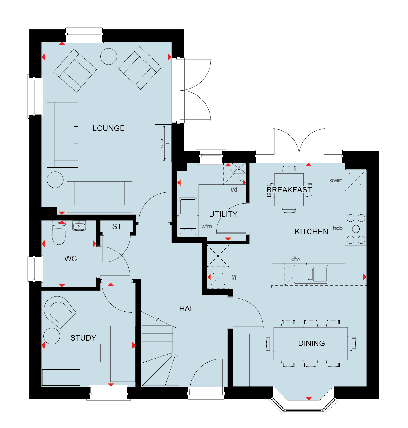 Your modern four-bedroom detached home features a bay-fronted kitchen-diner opening through to the garden via French doors, while the generous lounge also offers garden access. Your dedicated study is perfect for home working.